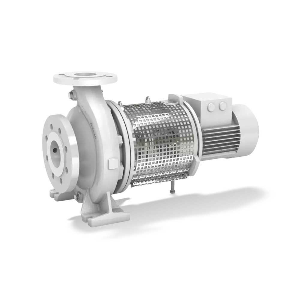 پمپ پوسته حلزونی برای نصب افقی یا عمودی، طراحی بیرون کشیدن از پشت، تک مرحلهای، با رتبهبندی EN 733، پوسته حلزونی با شکاف شعاعی، حلقههای سایشی، پوسته قابل تعویض